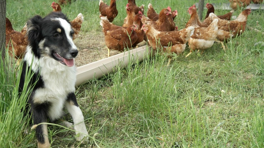 A la Ferme du Chot Heïdi est très utile pour chasser les renards du poulailler : Poules obligent !
